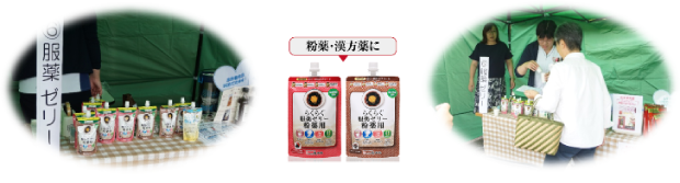 服薬ゼリーをご試食頂きました。粉薬と錠剤の両方に使用できる服薬ゼリーの使い方について紹介しました。