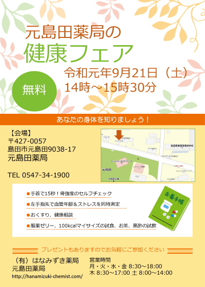 2019年9月21日(土) 元島田薬局で健康フェアを開催しました!