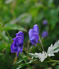 トリカブト植物は、北半球に分布しており、日本及び中国に約70種前後が存在していると言われております。その形が舞楽に使う冠に似ているところから、トリカブトと呼ばれるようになったと言われております。また主根様の塊根は両脇に翌年発芽する子根が出て、これを附子と呼んでいます。花の時期には、当年の塊根は萎縮して子根が充実してくるので、薬用に使うのはこの附子ということになります。
