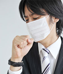 風邪やインフルエンザに続いて起こることが最も多く、刺激性のガスや、ほこりを吸っておきます。痰ははじめ水のようですが、次第に膿のようになり、痰のなかにビールスや細菌が見出され、一般の咳止薬は無効で抗生剤の服用が必要です。部屋の乾燥に注意し、安静休養が肝要であります。