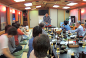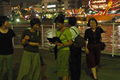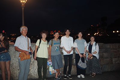 しとしと雨が降る中での出発でしたが屋形船に乗る頃から幸運にも雨が上がり、屋形船のデッキに上がり、皆で夜景を楽しむことができました。