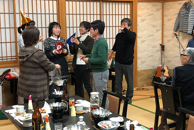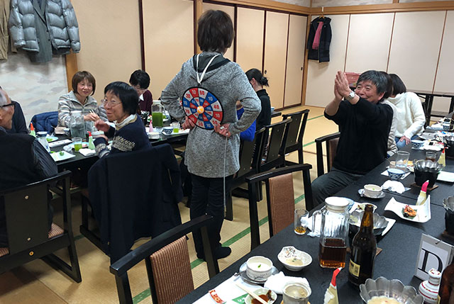 忘年会の幹事さん、総務さんが色々と余興の企画を考えてくださり、今年は「あっち向いてほい大会」で宴席は大変盛り上がりました。