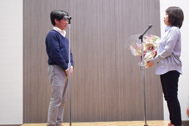 まず、元島田薬局の移転時に尽力くださった桜井さんに、感謝状が贈られました。桜井さん、大変お世話になりました。